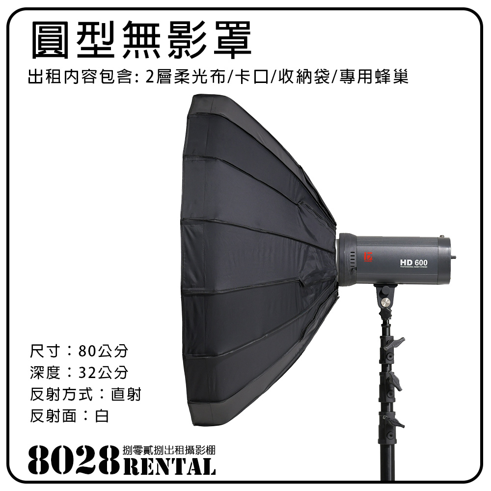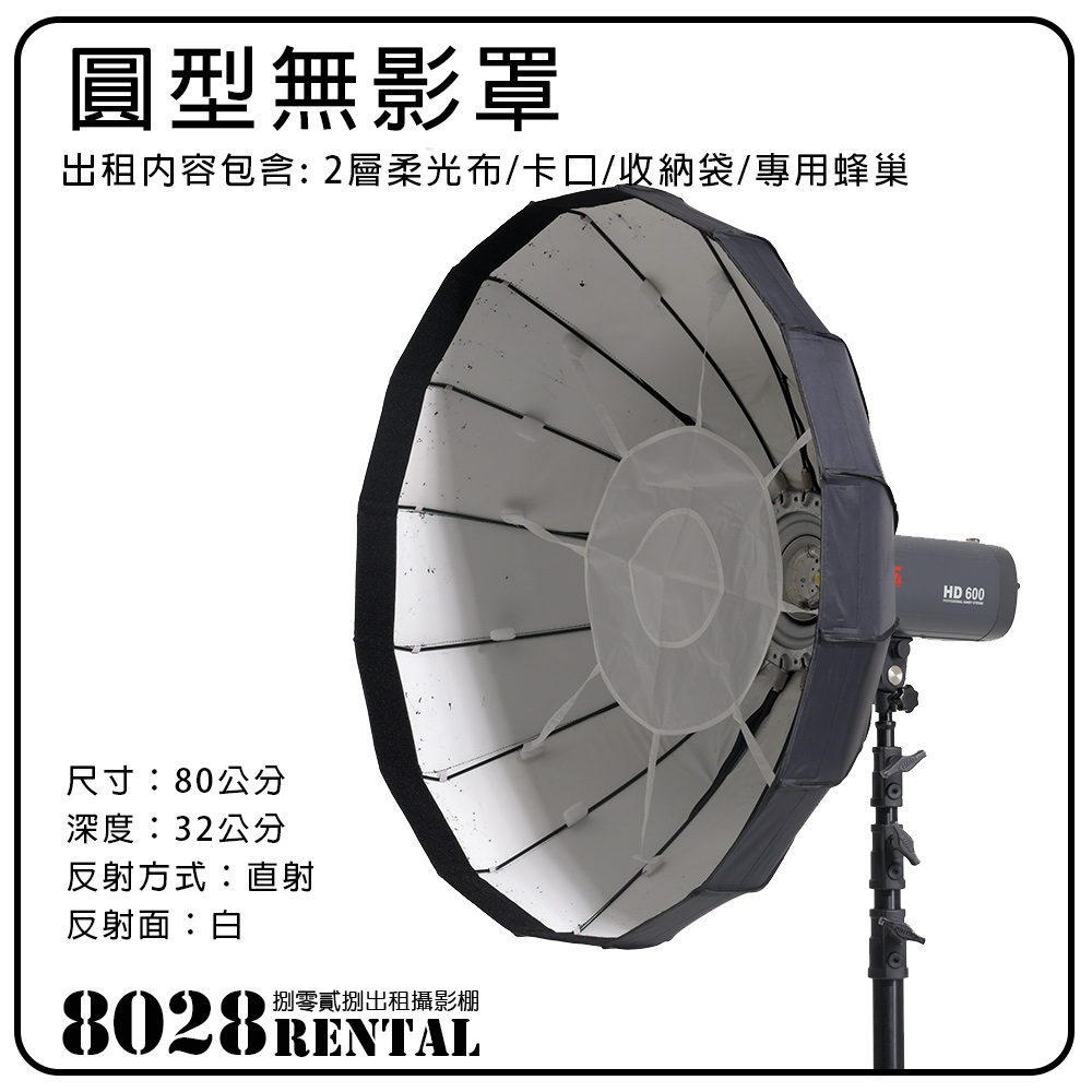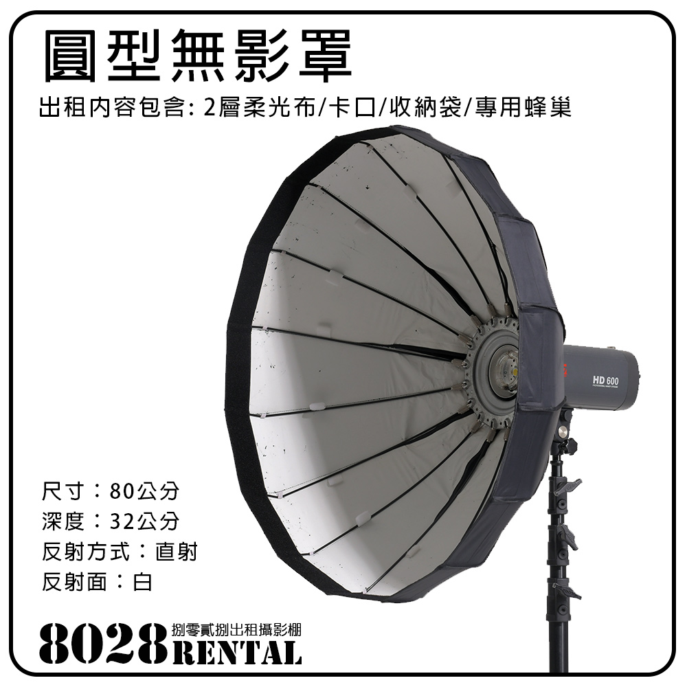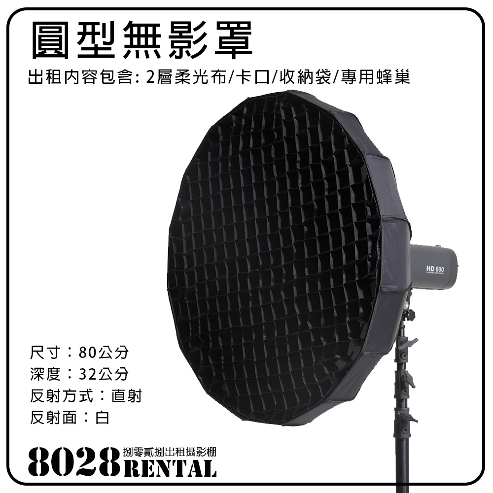 【器材出租】80cm 通用 圓形無影罩 白色反射面 按壓式 含軟蜂巢 快收 柔光罩 軟罩 雷達罩